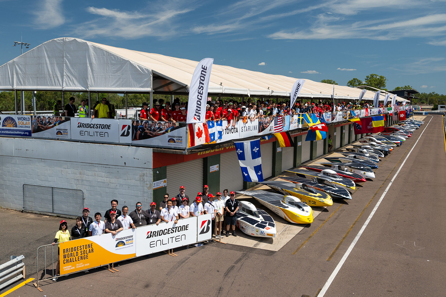 초고효율의 전기 자동차를 테스트하는 세계에서 가장 대담한 실험 무대로서 기획된 브리지스톤 월드 솔라 챌린지는 주로 대학생/대학원생과 고교생이 초청돼 이들이 설계 제작한 태양광 동력으로 달리는 자동차들이 레이싱을 펼칩니다.